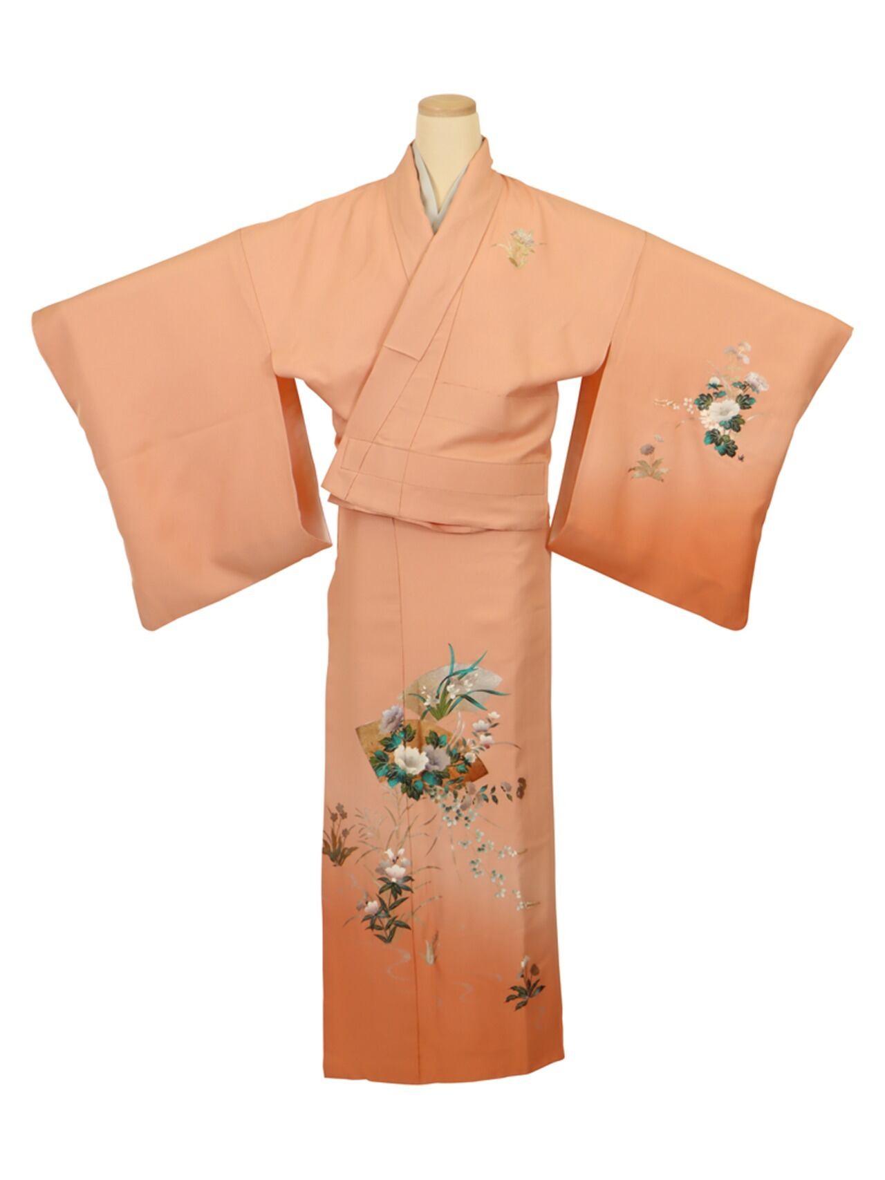 反物の状態で染められ、模様が縫い目にかからないよう工夫された着物。